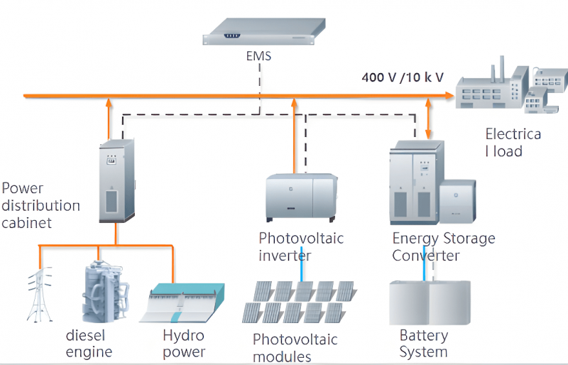 - It also supports simultaneous connection to loads, batteries, the power grid, diesel generators, and PV systems.